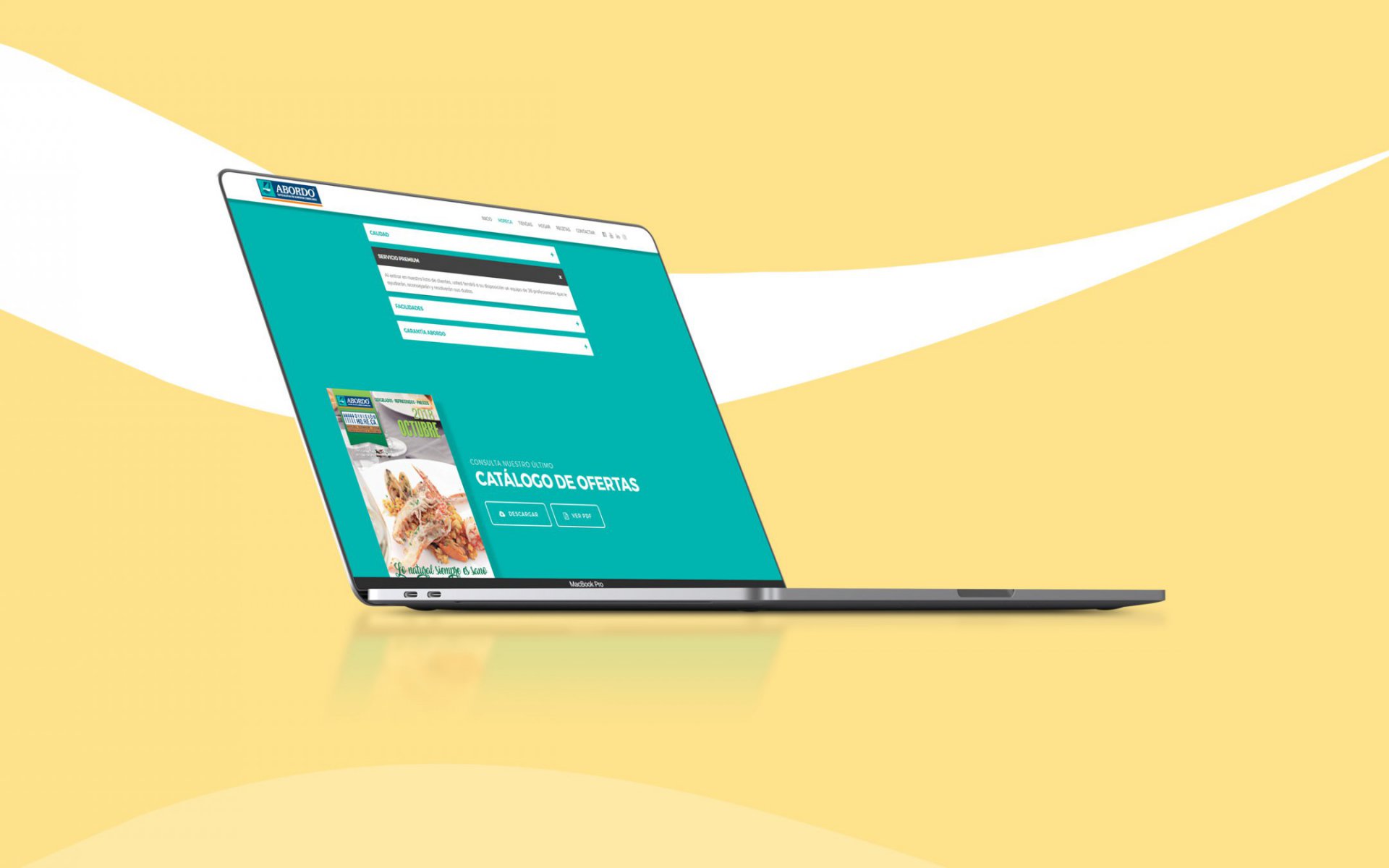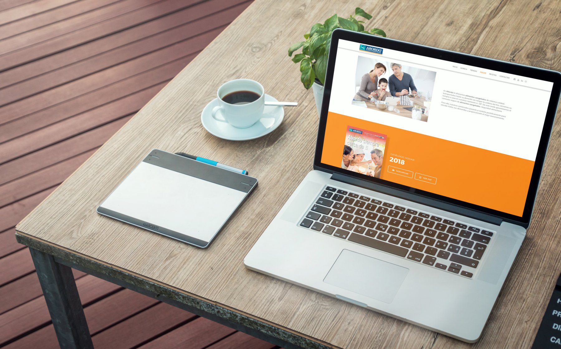 Abordo nos planteó renovar su web corporativa mostrando sus diferentes líneas de negocio y también crear una tienda online para sus clientes profesionales del canal de Horeca, lo que llamamos una tienda B2B (Business to Business). Esta tienda se alimenta desde su ERP, tanto las descripciones como las imágenes de producto. También diseñamos y programamos un localizador de sus tiendas propias mediante un mapa interactivo.